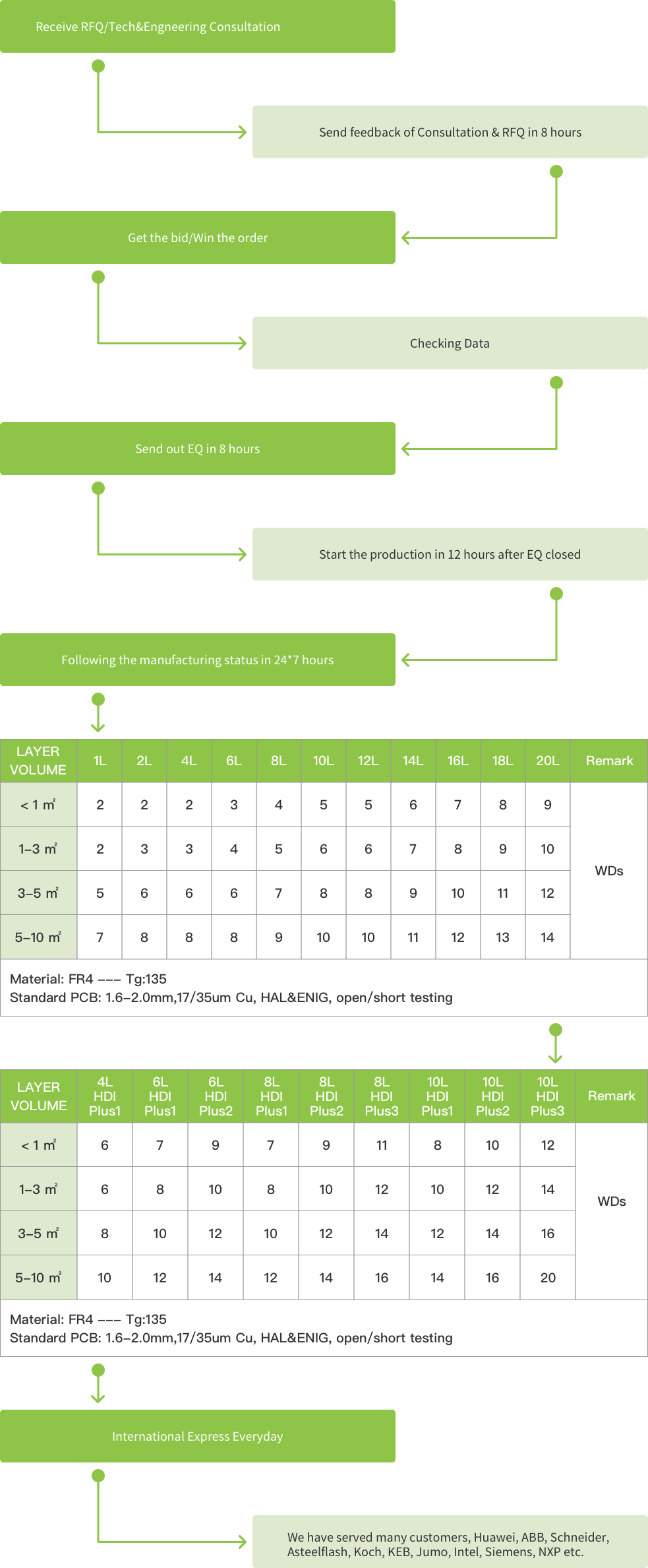 We can offer short lead time through rapid logistics. We can communicate technical details with you through phone, email, video meetings or site meetings. Your strong cooperation will make it easier for us and we will provide real-time and in-depth technical support to turn your PCB products from conceptual design to volume production.